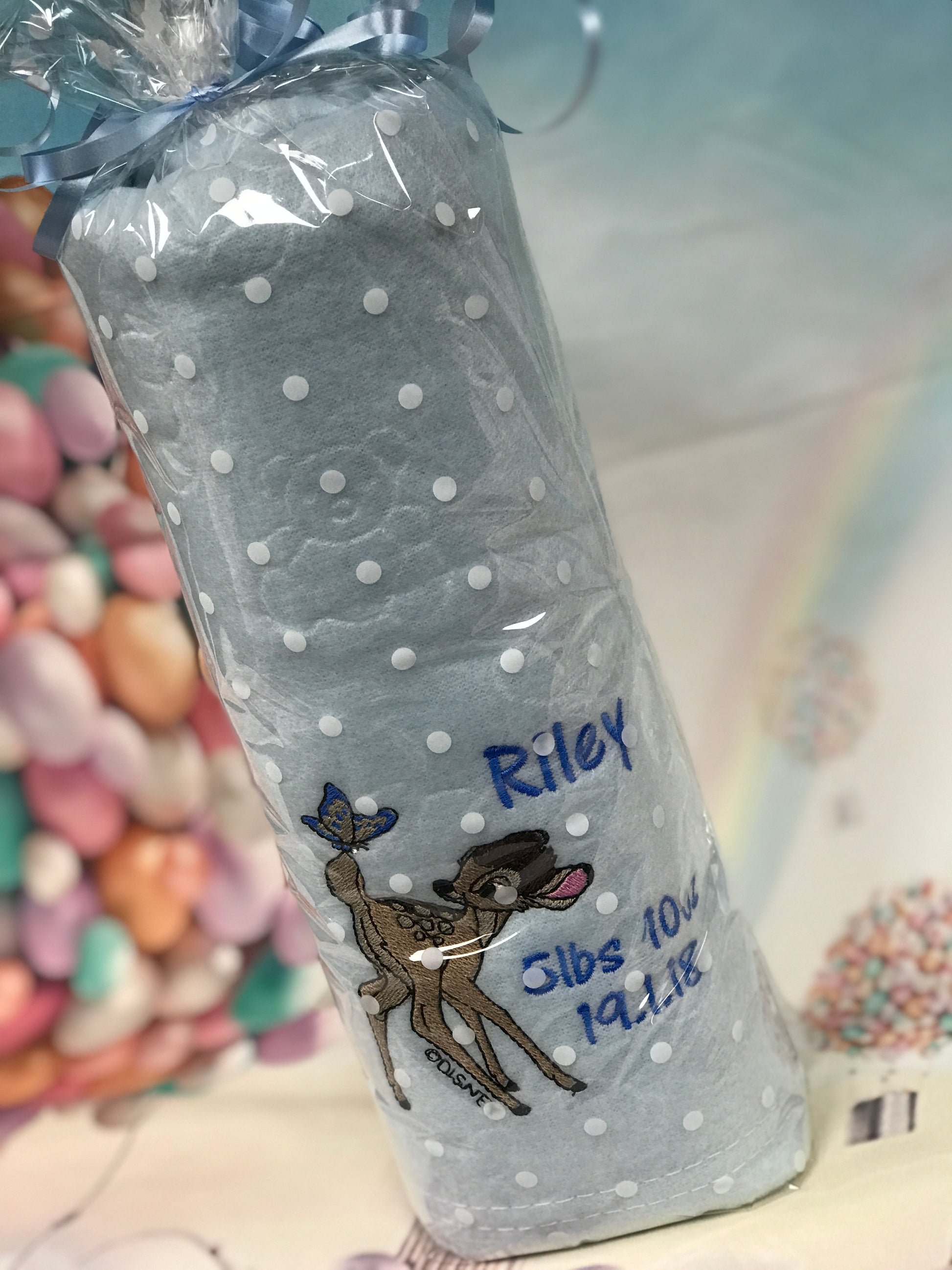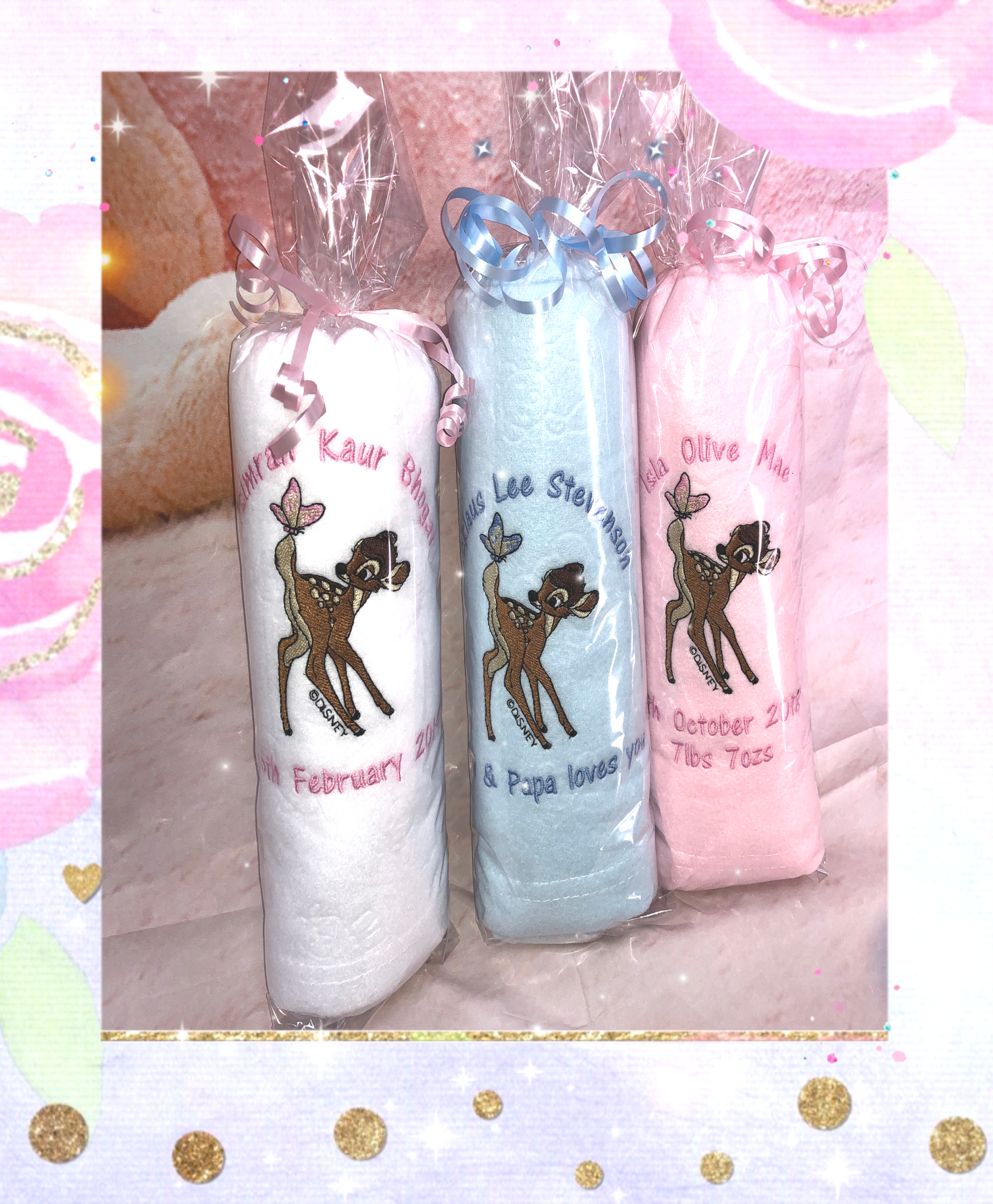 Create a meaningful memory with this personalised Bambi baby blanket – a timeless gift for any little one.