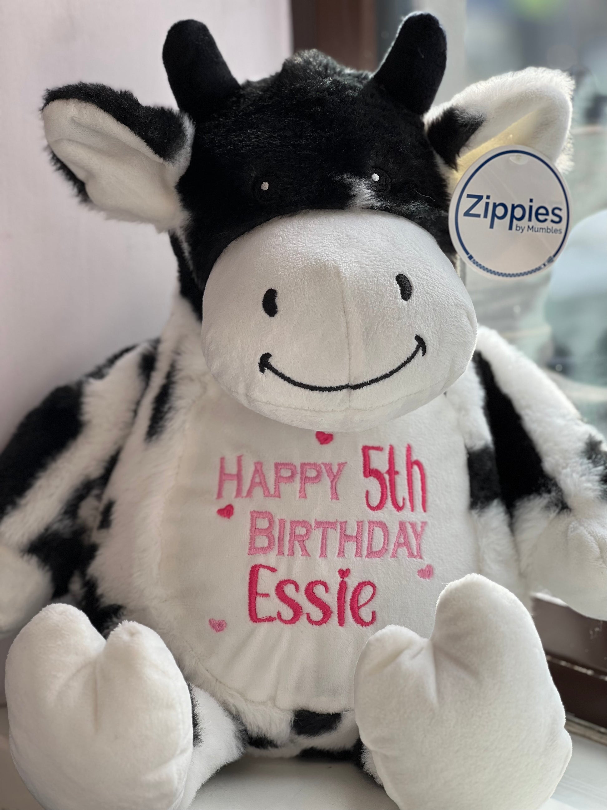 Each cow is embroidered to order with great care and high-quality craftsmanship. CE certified and safe from birth, it’s a thoughtful, personalised gift that will be treasured for years.